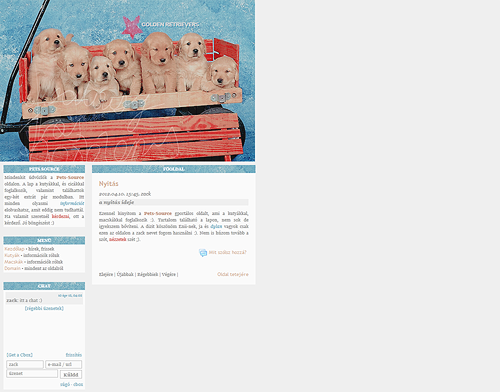 Mindenkit üdvözlök a Pets-Source oldalon. A lap a kutyákkal, és cicákkal foglalkozik, valamint találhattok egy-két extrát pár modulban. Itt minden olyasmi információt elolvashatsz, amit eddig nem tudhattál. Ha valamit szeretnél kérdezni, ott a kérdező. Jó böngészést :)